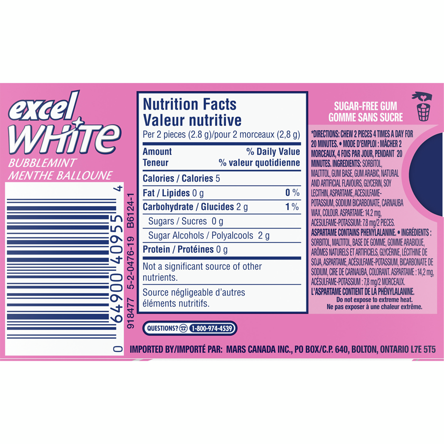 Excel White Bubblemint Gum